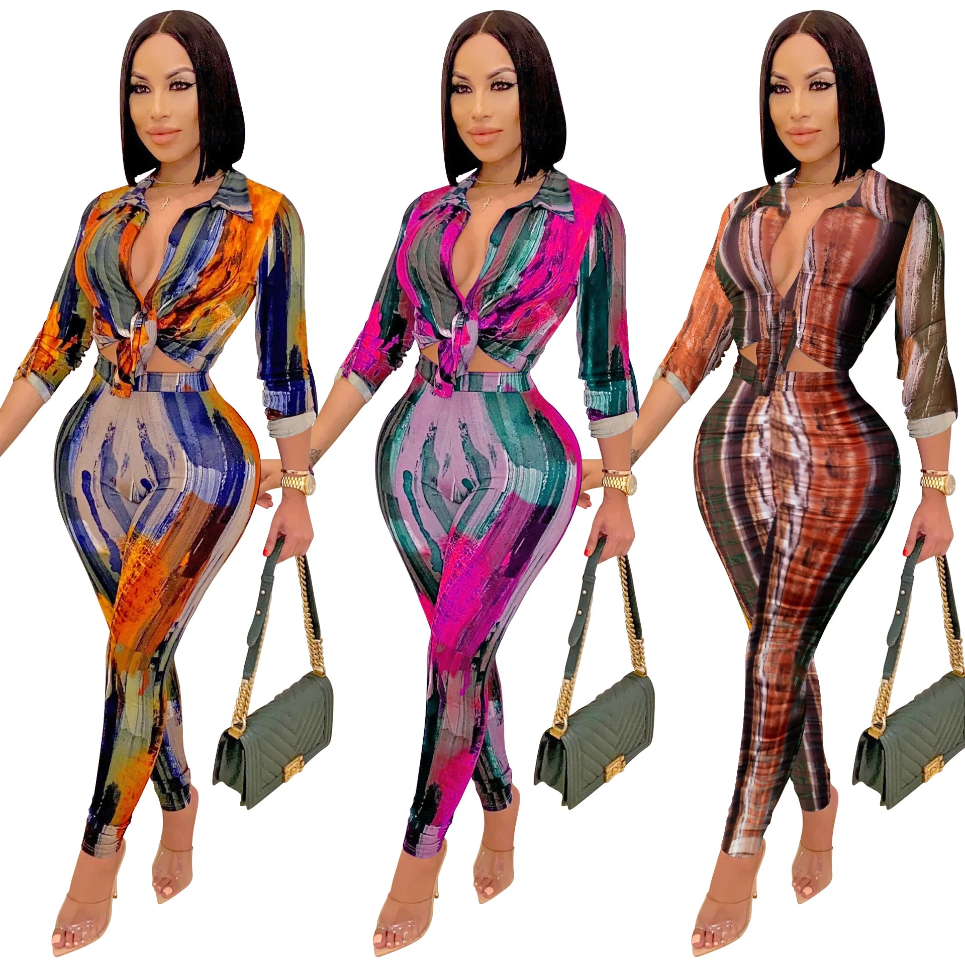 Summer 2025 Women Clothes Lace-up Sleeveless v Neck Crop tank Tops Printing Mesh Leggings 2 Two Piece Pants Outfits Set Women